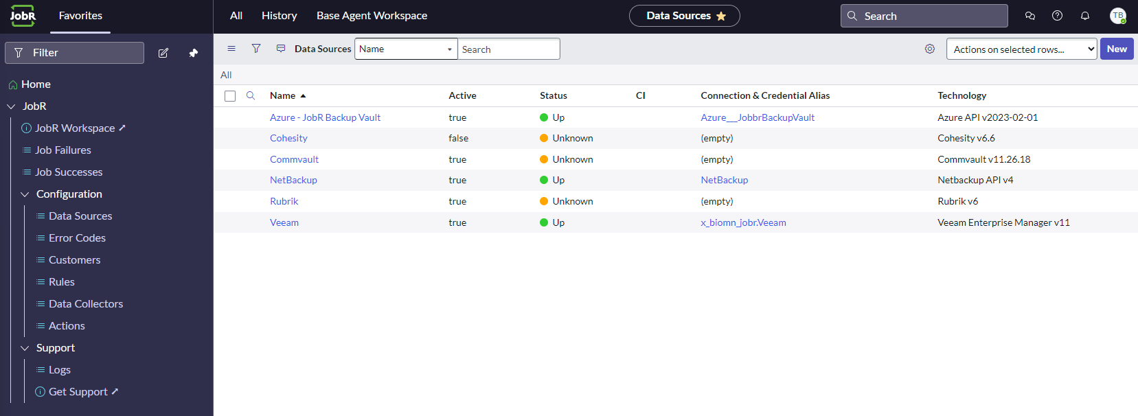 A data source within JobR represents the system from which JobR will extract information. The REST API URL and associated administrator credentials for the data source are stored as ServiceNow Connection and Credentials aliases. These will need to be configured before the data source can be used.